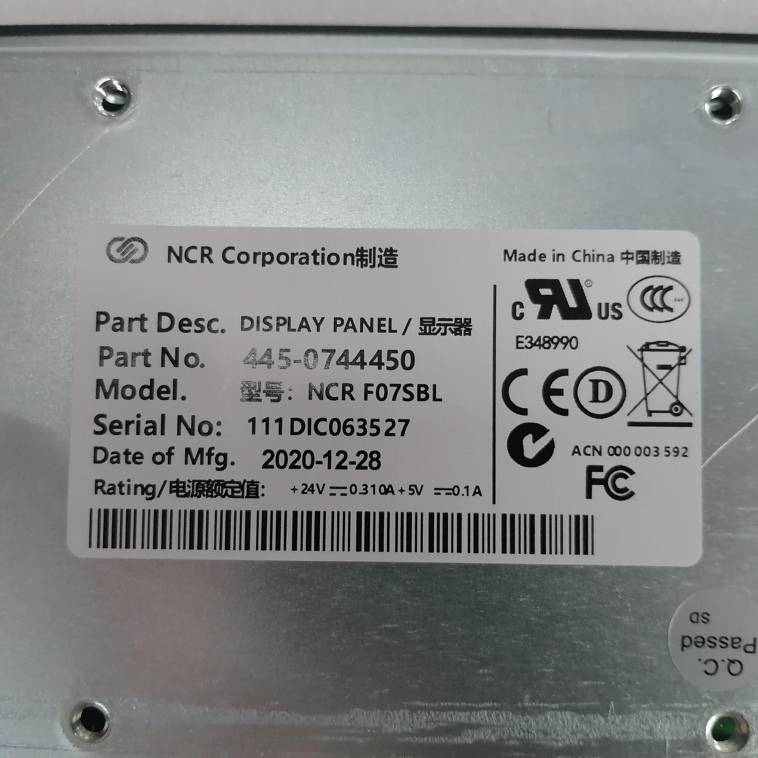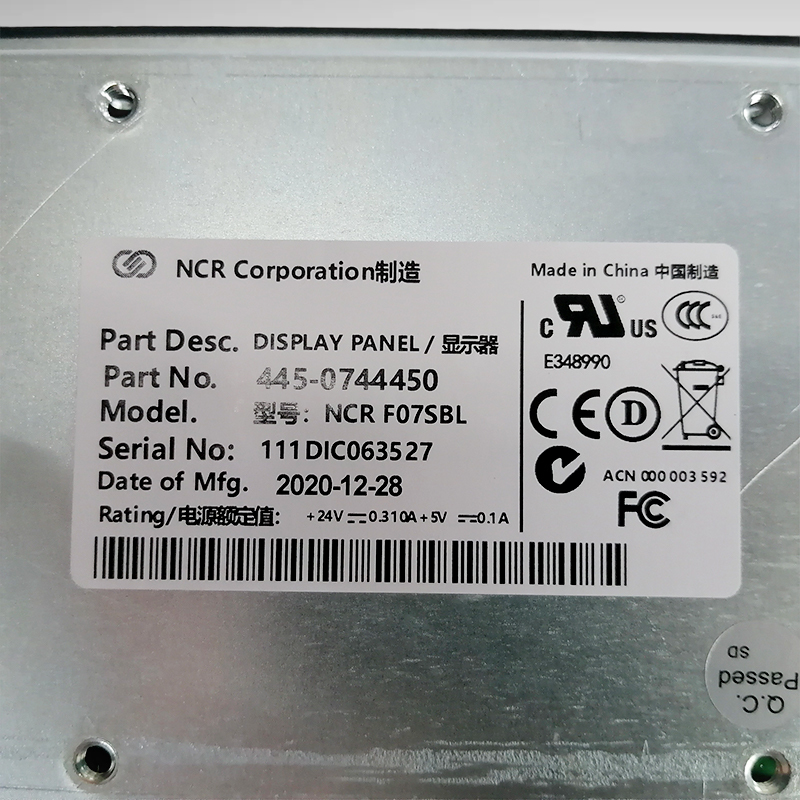 445-0744450 এনসিআর FO7SBL ডিসপ্লে প্যানেল এনসিআর অংশ তালিকা 0